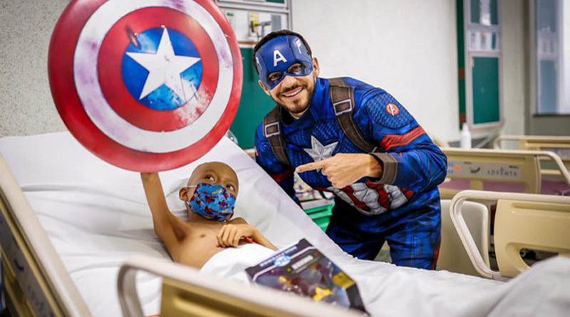 Americanistas se visten de superhéroes y visitan a niños enfermos